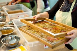 Rejoignez-nous pour une expérience artistique authentique, de la cueillette des plantes, en passant par leur transformation en fibres de celluloses, puis en création papier.